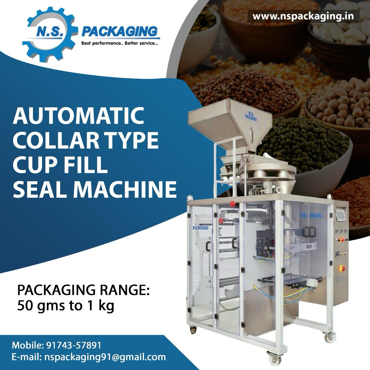 The Volumetric Cup Filler Machine is a cost-effective and highly efficient packaging solution designed for filling free-flowing granular products by volume. It is ideal for packing products up to 1 Kg such as grains, pulses, rice, sugar, tea, namkeen, seeds, and similar items.